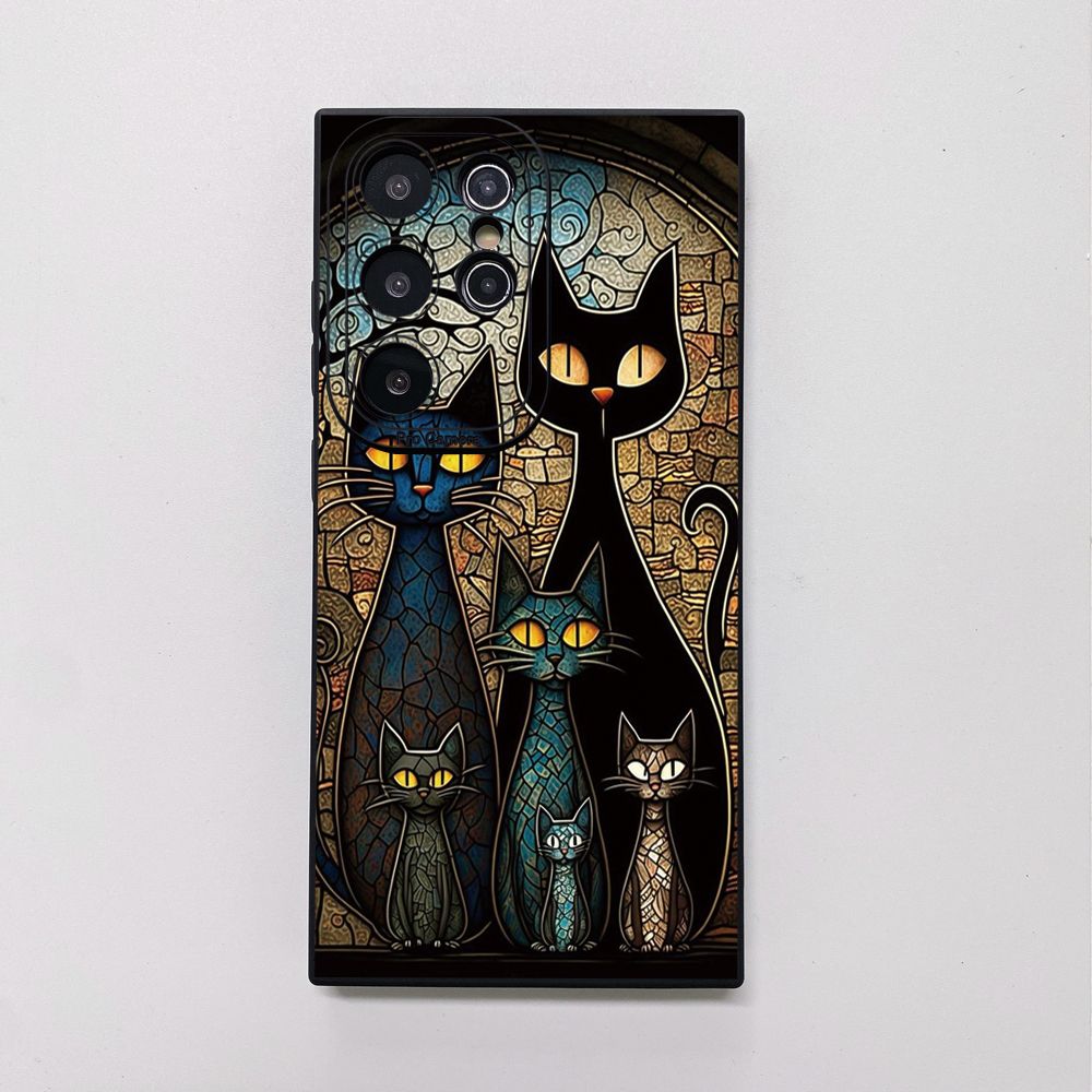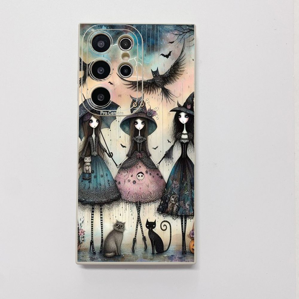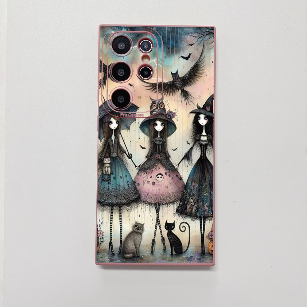 for Samsung Galaxy S24 S23 Ultra S22 Plus Note 20 S21 FE S20 Black Cat Magic Girls Full Protective Case Anti Drop Cover