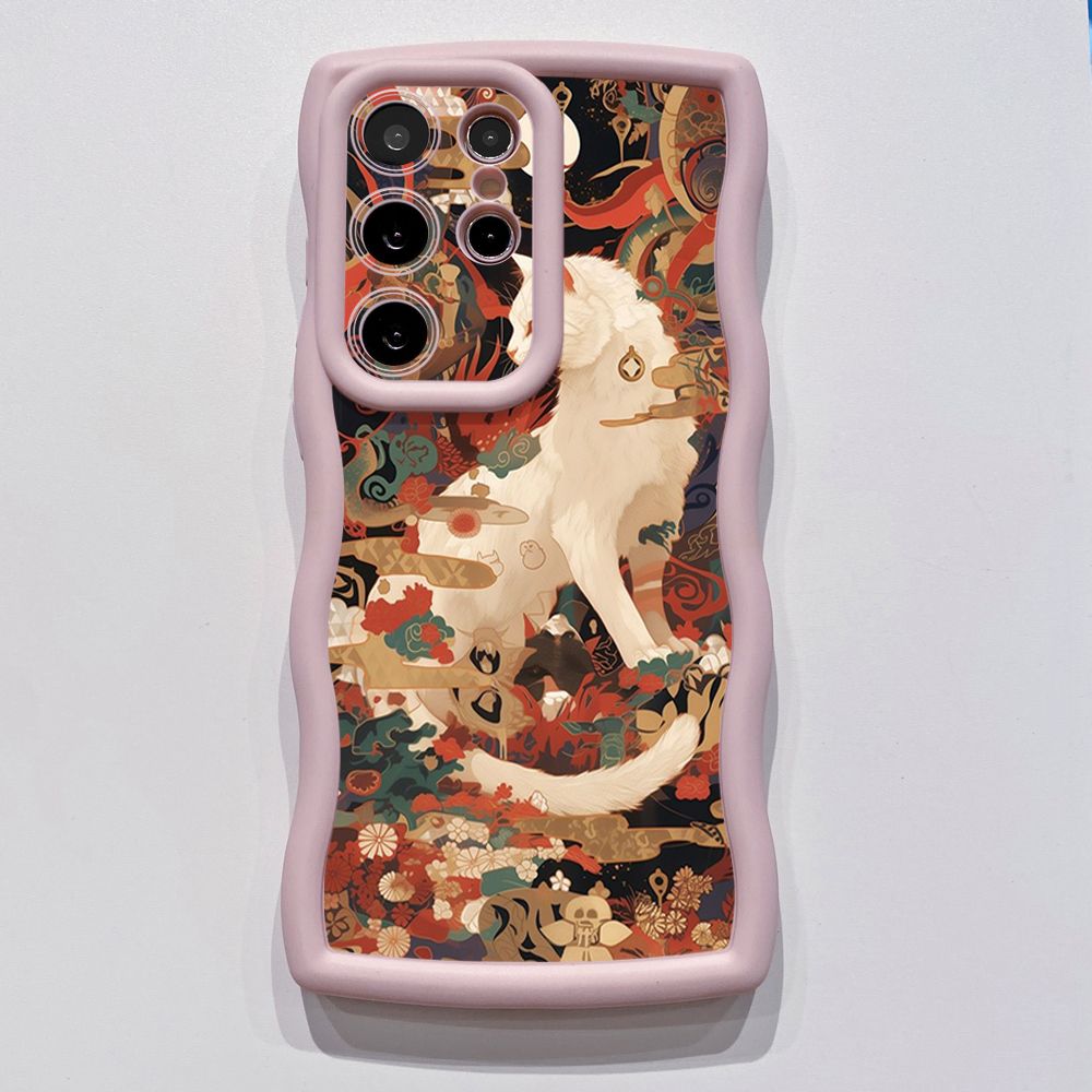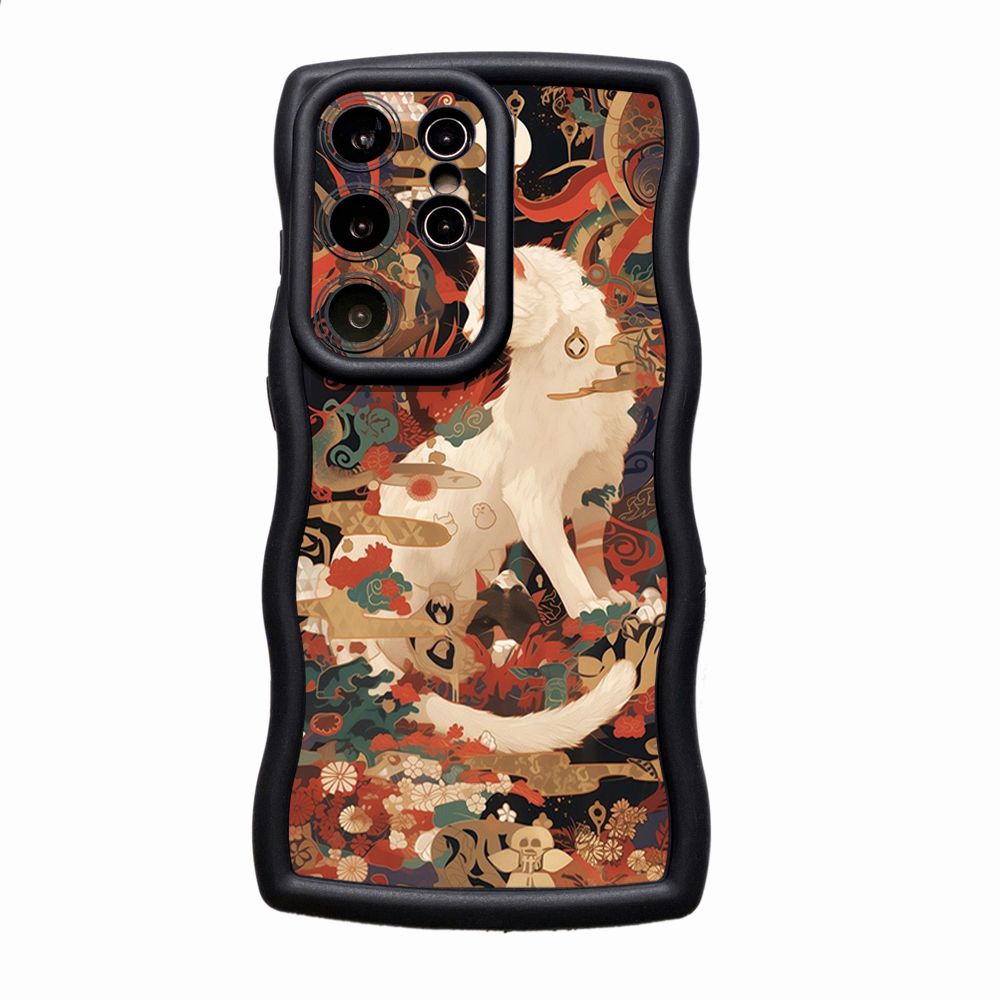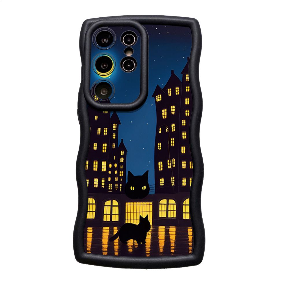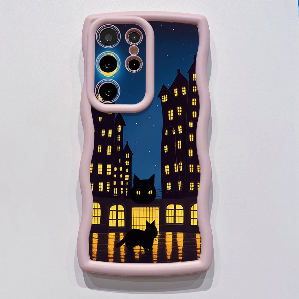 For Samsung Galaxy S24 S23 Ultra S22 Plus S21 FE S20 White Black Cat Wave Frame Phone Case Anti Drop Cover